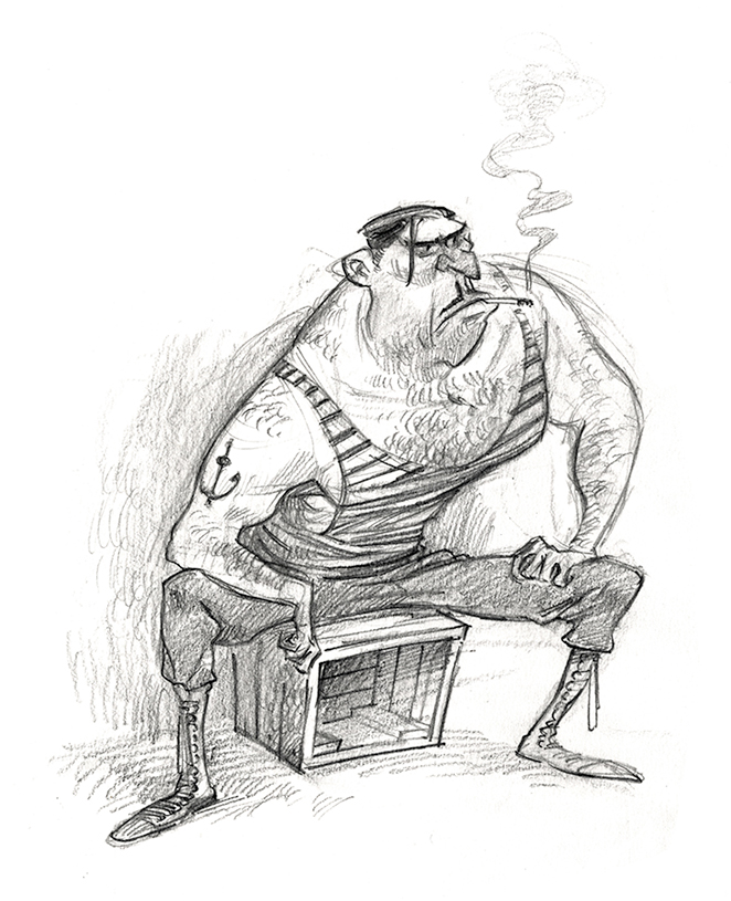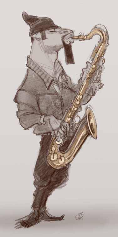 I'm trying to find the right look for a story written by Tjibbe Veldkamp. I do like the looseness of the sketchlines still in this final illustration.