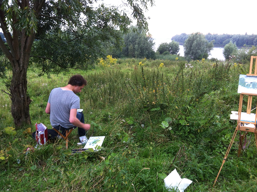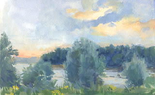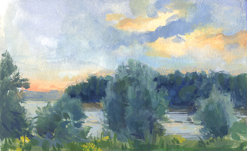 The sun was setting fast, so we had only about an hour to do a little sketch. In this hour, the sunlight changed dramatically, so we had to make descisions really fast. Having limited time is always good to stay extra focused, and also I find the light and colors of a sunset very beautiful.