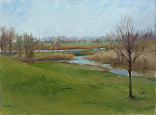 I had an hour yesterday to do a quick oil sketch on a deserted and overgrown contruction site down the block.